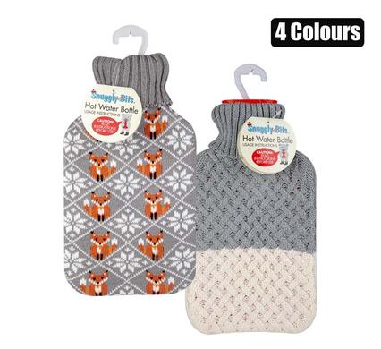 Hotwater bottle 2l w/knit-cover asstd