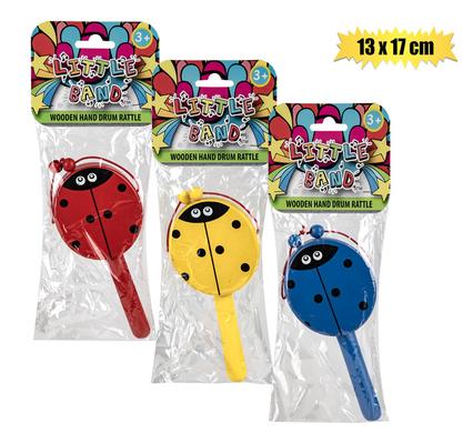 Musical wood hand drum rattle 13x17cm