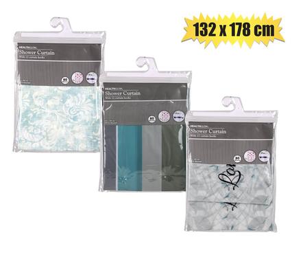 Shower curtain pl w/12 hooks 180x180cm